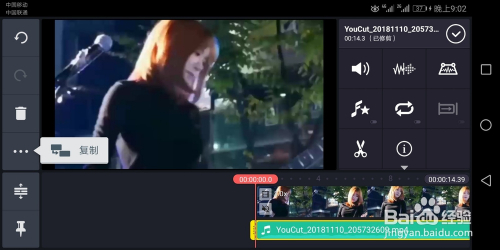 选择音频点击左边三个点,选择复制,选择第一层音频,点击喇叭,调出音量选项。