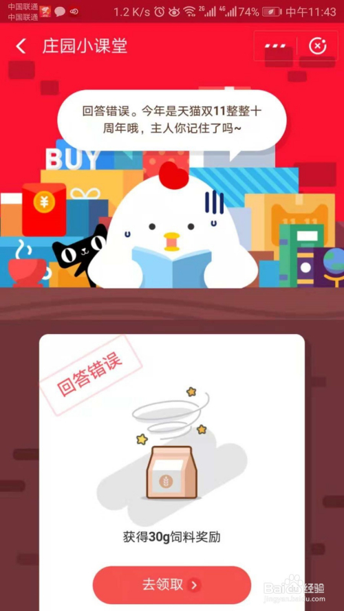 回覆错误,如图所示。小编都没有感受双11已经有十周年了,十周年了。好的,颠末小编错误的谜底,此刻你知道本年是天猫双11 的第十周年了吧。