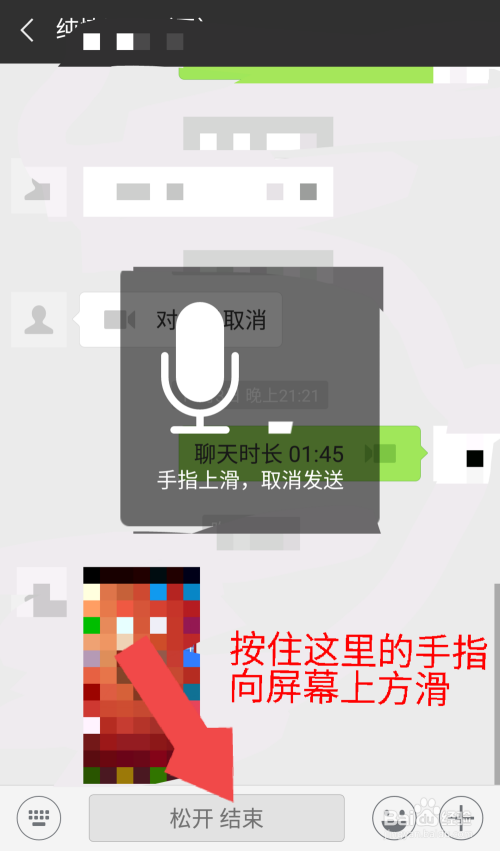 在我们发送语音信息说说说到半截的时辰,按住“按住说活”按钮的手指不要分开手机屏幕,直接标的目的上滑,然后松开手指,说了半截的话就打消了。