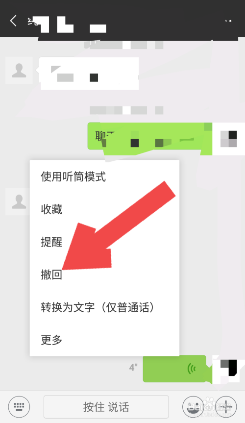 若是感受说的有问题背工指已经松开屏幕,语音信息已经发出去了,这时我们长按发出去的那句语音信息,在呈现的功能框中点击“撤回”,如许这条语音信息也会被打消。