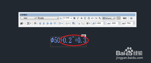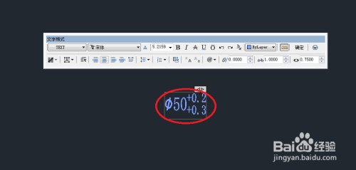 1、如图,双击文字“φ50”,进入文字编纂器: