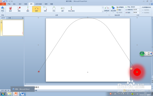 第五步:选中太阳外形,在“动画”组中单击“结果选项”按钮,鄙人拉列表中选择“编纂极点”,在路径上调整弧线的弧度。