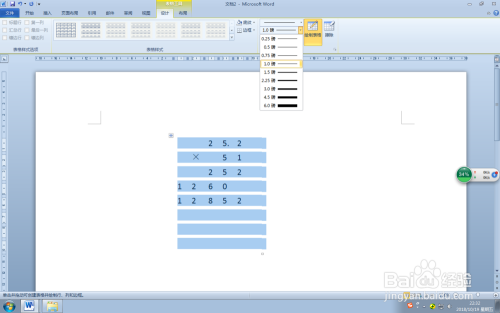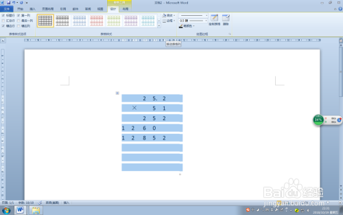 第六步:在“画图边框”组中单击“绘制表格”按钮,鼠标酿成一支笔外形,在乘法竖式中绘制需要的横线,然后再单击“绘制表格”按钮打消绘制。