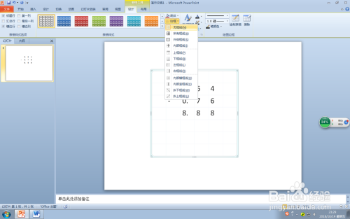 第一步:打开PPT2010,按照需要插入一个表格,设置当作无样式、网格型,然后调整好大小和位置及字号。