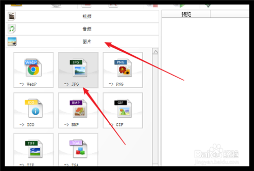 打开格局化工场,点击需要转化当作的图片格局,即“图片”--“jpg”。