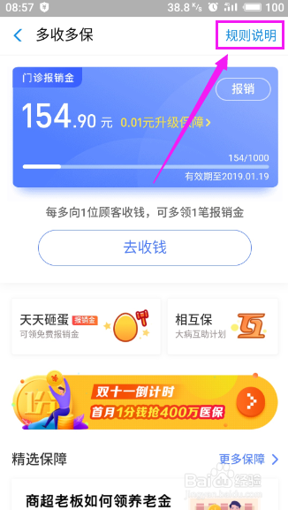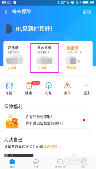 蚂蚁保险界面中找到免费报销金“多收多保”