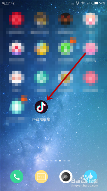 打开手机并在手机的桌面上找到抖音APP,打开抖音,如图所示。