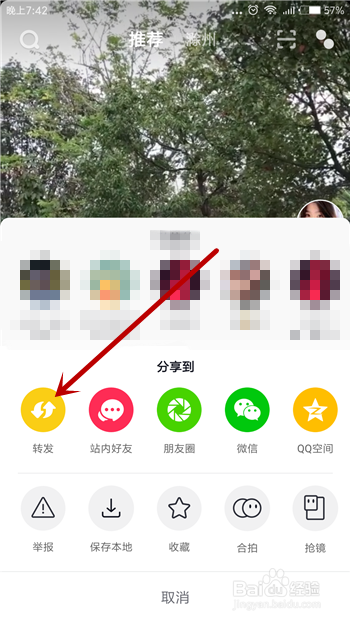 打开转发界面后就可以看到【转发】的选项了,点击起头转发视频。