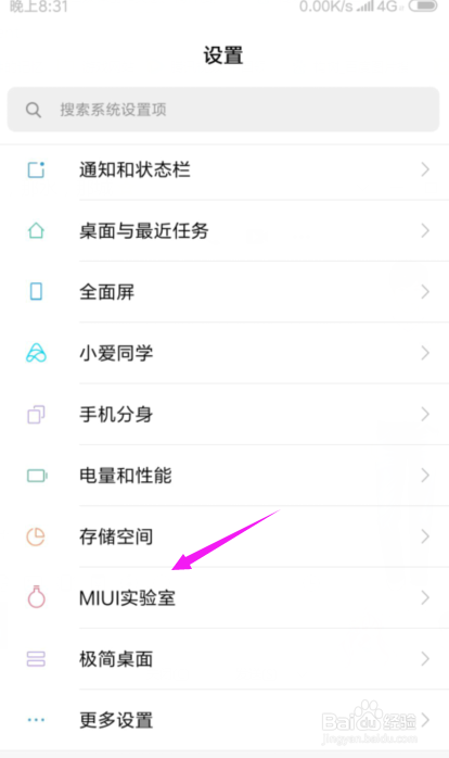 点开小米【设置】后,我们接着打开【MIUI尝试室】,如图。