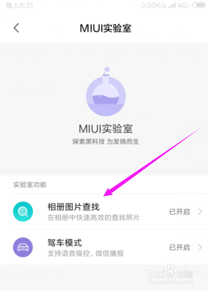打开【MIUI尝试室】之后,继续点开【相册图片查找】,如图。
