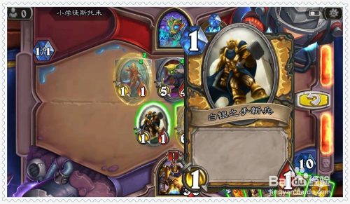 首先,利用已方场中的侍从"白银之手新兵",进犯对面场中的侍从"藏宝海湾保镖",白银之手新兵灭亡。