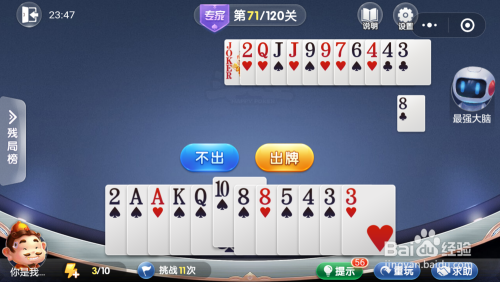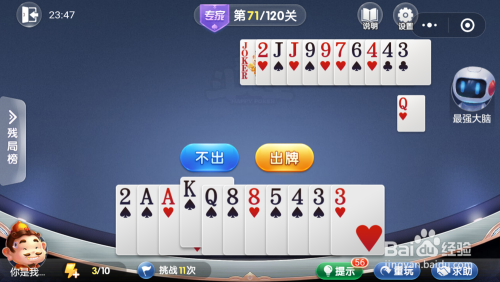 最壮大脑打出一张3,我打出一张2,接着打出一张5就过关了。