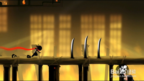 一起头,会碰到木板桥上的刀剑,这个时辰需要我们起跳躲过刀剑。而且一次起跳的长度不足以躲过刀剑,所以我们需要利用二段跳跃。