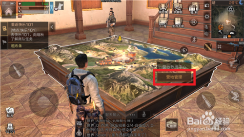 在市政年夜厅了里就可以看到一个沙盘,走到沙盘四周并点击【营地办理】。