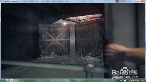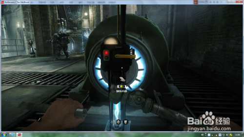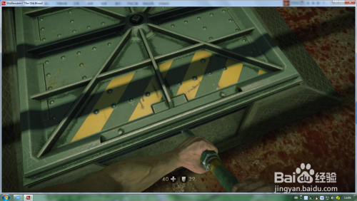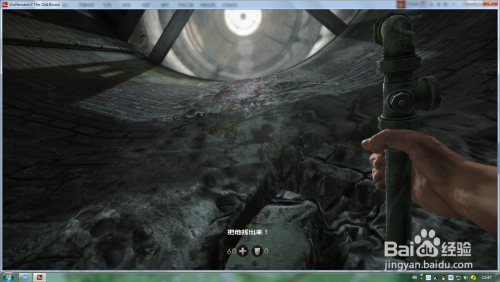 按键盘E打开门,可是打不开。想此外法子出去,找到铁管。