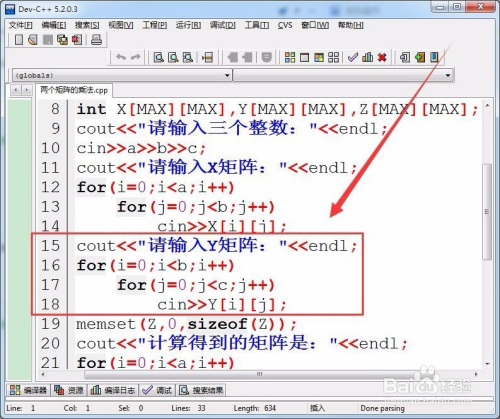 运行法式,输入矩阵A和B的行数和列数,以及A矩阵和B矩阵的所有元素,电脑就管帐算出乘积C矩阵的所有元素,并输出C矩阵。