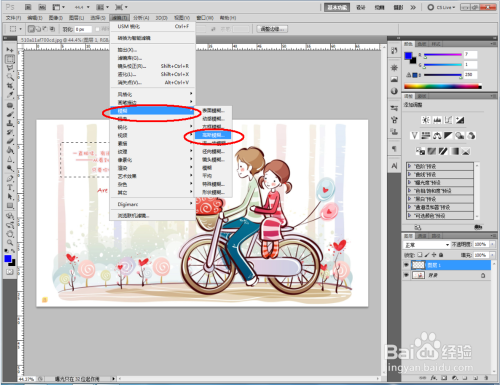 利用滤镜对图片局部进行恍惚和和锐化处置。点击【矩形选框东西】,成立出选区后按住键盘【Ctrl】+【J】,复制出图片局部区域后,再利用【滤镜】进行恍惚和锐化处置(如图所示)。