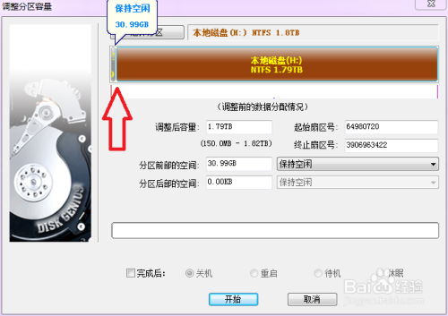 若是要调整分区大小 则在需要调整的分区部门 点击右键选择“调整分区大小“ ,如图 拖动箭头所示位置可以调整大小 按本身的喜好吧