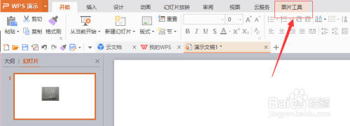 之后点击图片,代表你要对其进行操作,再将视线转移至上方编纂栏,看到“图片东西”一栏,在这里进行设置;