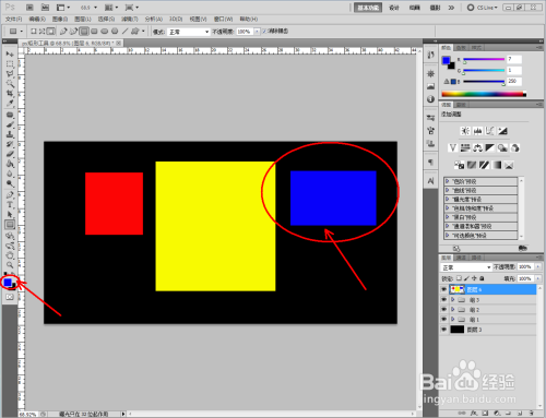 点击【矩形东西】,点击上方【填充像素】图标,选择分歧的前景色,绘制出“红黄蓝”三个小色块 (可以看到,由【填充像素】建造的色块为一个通俗图层,不克不及进行颜色更改。),调整好模式和透明度即可。