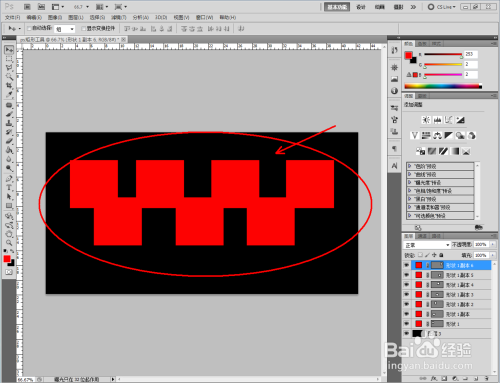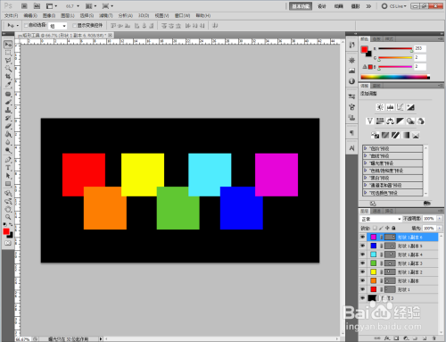 点击【矩形东西】,点击上方【外形图层】图标,颜色选择红色后,在作图区域绘制一个红色色块(注:外形图层可进行颜色更改)。按住【Alt】键拉动复制出多个色块后,点击每个图层前面的颜色方框进行颜色更改;