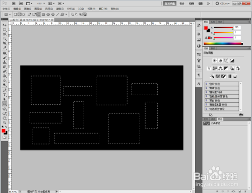 点击【矩形东西】,点击上方【路径】图标,在作图区域绘制出几个方框路径。点击右边面板中的【路径】栏,点击【将路径作为选区载入】,成立起选区。点击【填充】东西,对选区进行填充;