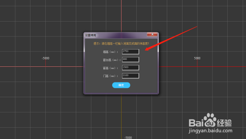 会弹出设置墙高提醒框,可以按照需要设置墙高、窗台高、窗高、门高,点击确定