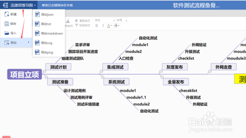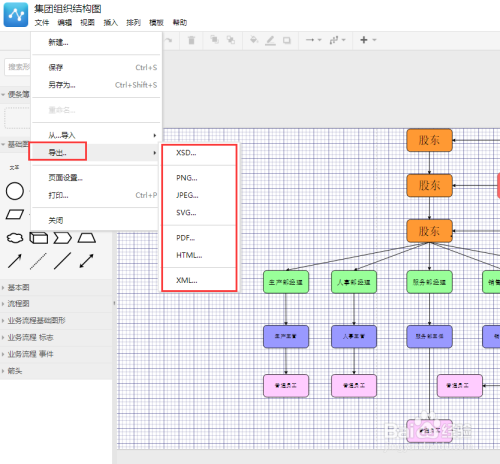 4、两者导出步调一致,画好流程图之后可以导出其他格局也可以在线存储便利下载继续编纂;