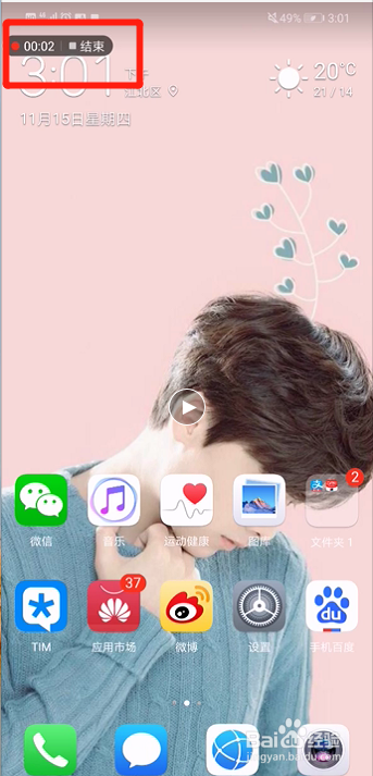起头录制时,屏幕左上方会有显示,录制时候的提醒