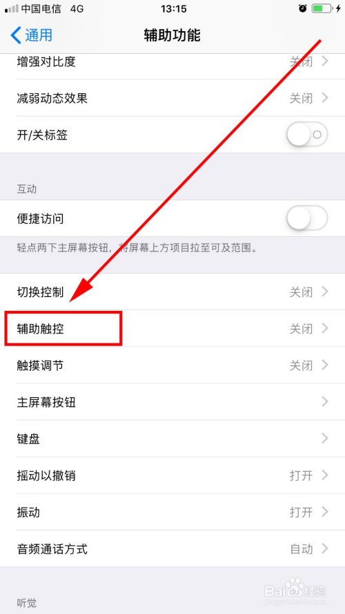 标的目的上划动屏幕,找到“辅助触控”,点击一下。