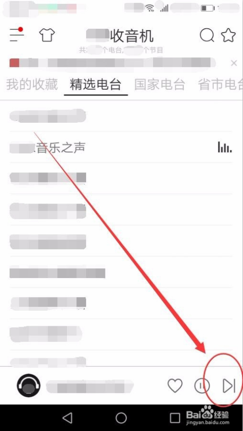 点击右下方的按钮,可以更改收音机FM频率,收听下一频道。