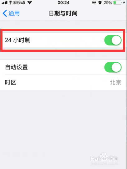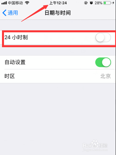 4.在日期与时候中头经由过程开启或封闭24小时制就可以实现24小时与12小时制的切换了。