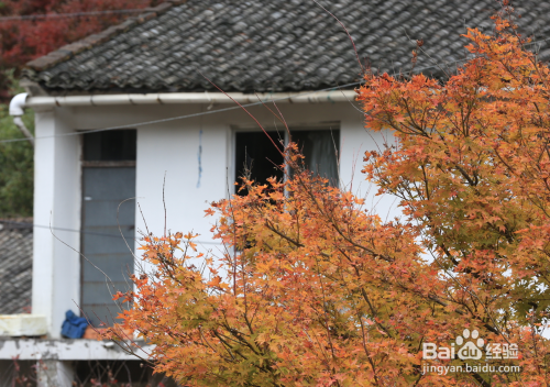 若是拍摄秋景之处,位于平易近居之旁边的话,就可以连系平易近居,作为拍摄秋景的陪衬,在分歧色彩的陪衬中,加倍凸起秋景的色彩来。