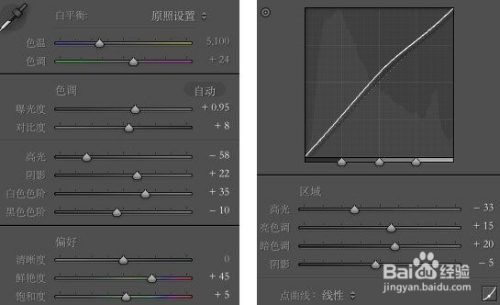 在LR中,我先提亮整个画面,让画面亮起来,但这时辰画面的一些高光部门就会溢出,所以要节制高光,提亮暗影,画面的曝光就会看起来比力舒畅。这里有个重点就是,必然要拉白色色阶,这步可以或许晋升整个照片亮的部门,而高光部门影响会比力小,整个画面就鲜活了起来,再压一下黑色色阶,加强一下对比。