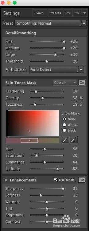 这步做的是常规动作,用污点修复画笔,修补东西和钤记去除皮肤中的瑕疵,有需要可以再液化一下。这妹子的皮肤仍是半斤八两不错的,要求不高的话可以不消磨皮。而需要磨皮的话,就用到大师很熟悉的Portraiture插件: