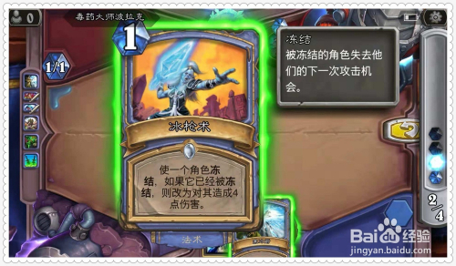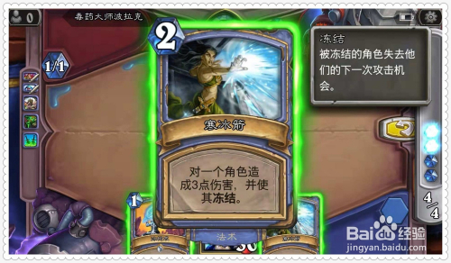 首先,利用一张手中的“寒冰箭”,射对方的英雄,造当作其3点危险,并将之冰冻。