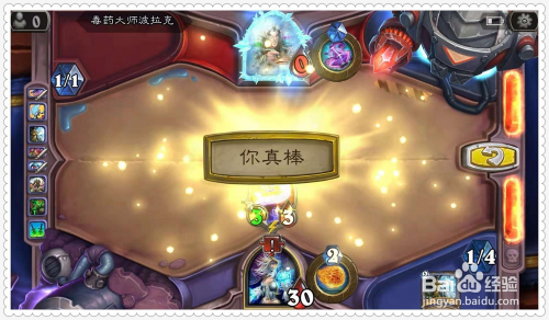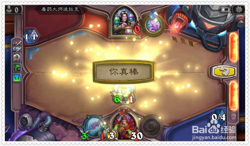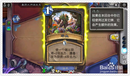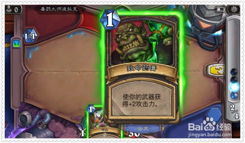 利用手中的牌“致命药膏”,为英雄的兵器增添2点进犯力。