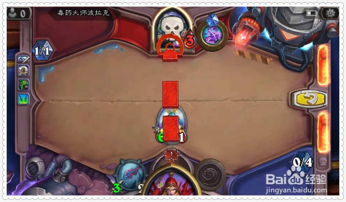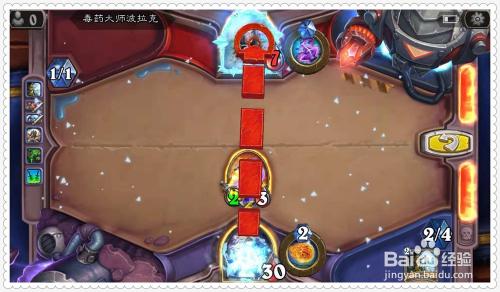最后,别离用已方英雄、侍从蓝腮兵士打脸对方英雄,将之生命值清空,获得过关。