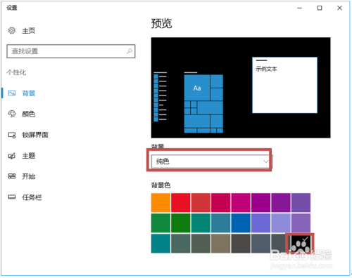 在第三步中若是选择“纯色”选项,则可以鄙人方的颜色列表中选择响应的颜色,选择完毕后,可以在“预览”区域查看布景结果。