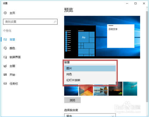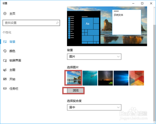 若是选择“图片”选项,则可以在所列的图片列表中进行选择,也可以单击“浏览”,将计较机中的图片设置为布景。