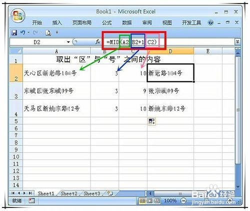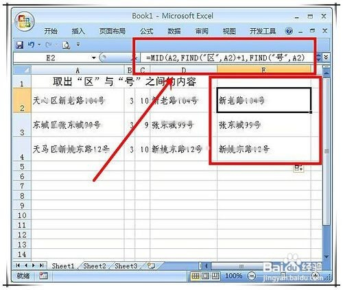 然后,我们就可以操纵find函数别离来获取到子字符串两头的位置,再操纵mid函数来截取子字符串。需要注重的是,mid截取字符的起头位置是在“区”的位置的根本上加1。