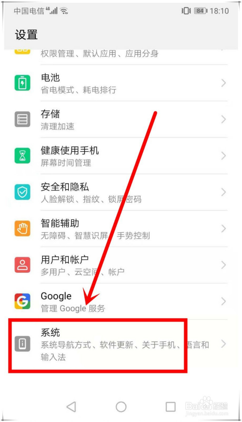华为mate20开启悬浮导航第二步:在设置页面,标的目的下翻动页面,找到“系统”选项,点击进入。