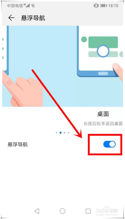 华为mate20开启悬浮导航第五步:然后,在打开的窗口中,开启此中的开关,如许悬浮导航就会呈现在屏幕上了。
