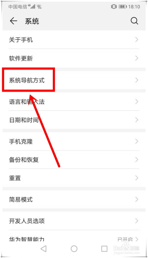 华为mate20开启悬浮导航第三步:在系统页面,点击进入“系统导航体例”选项,进行下一步操作。
