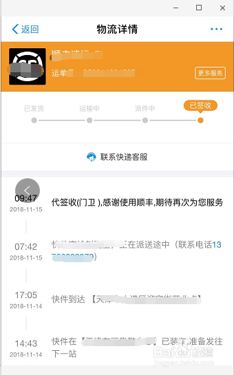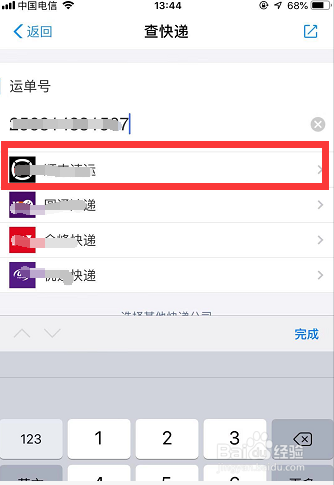 输入完整的快递单号后,鄙人方主动显示的快递公司中选择准确的一家。例如小编的伴侣给小编单号告诉小编寄的是顺丰,小编输入快递单号后,就点击下方的顺丰。