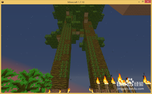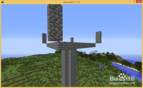 之后在柱子四周弄2个方块,如图,接着围当作三格高度如图。