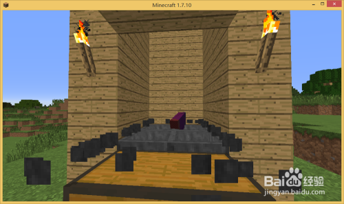 首先弄一个2X2的方块,然后环绕起来如图所示,接着弄上24格高度,把门口前面封上去,