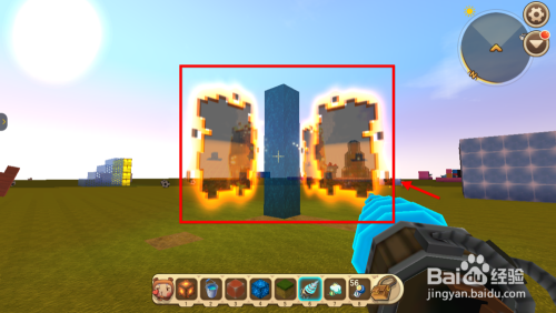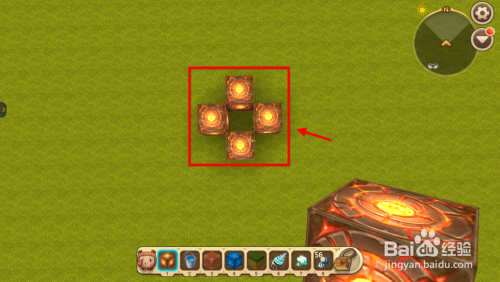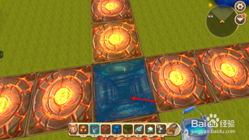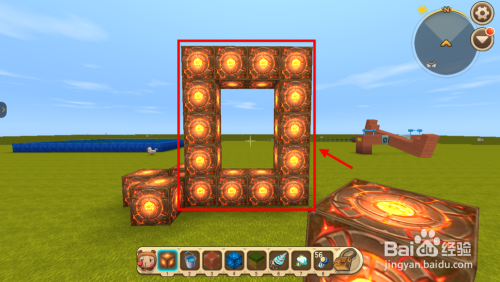 地心门框方块如下图所示放置,围出一个空格,不成选用其他方块。
