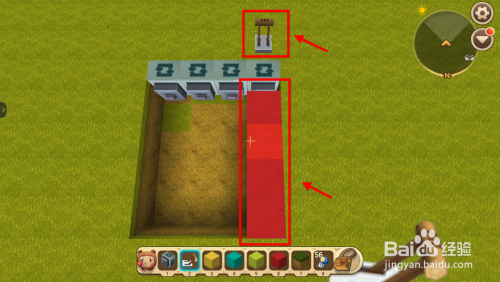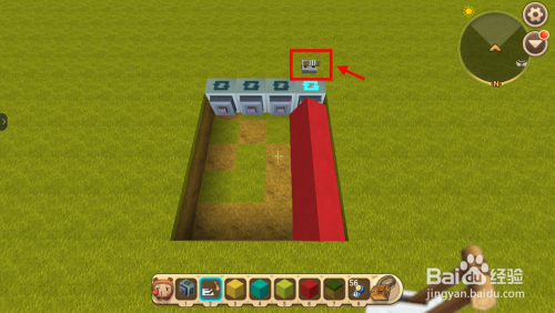 然后拿出硬沙块,什么颜色都可以,填充1列后在顶端放置开关。