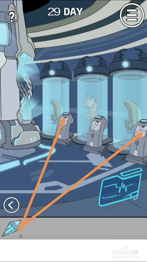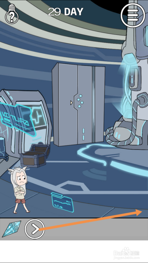 获得宝石后,点击标的目的右箭头,然后将标的目的右箭头拖动到下图中箭头标注的位置。